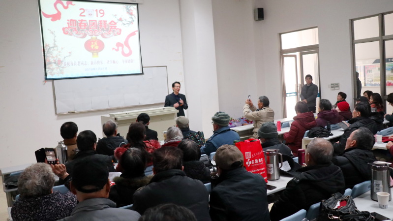 洪霄院长从三个方面通报了学校近期的建设发展情况,强调了学校第二次党代会报告中的今后五年总体发展思路:瞄准一个目标,贯彻两条主线,突出三个平台,实施四大战略。他指出要以建设学校的内部质量保证体系为抓手,建立一个鼓舞“55821”的质量保证体系,提升学校人才培养质量。他指出学校今天的成就,离不开老领导老同志一直以来的关心和支持,老一辈人的优良传统和优秀作风,始终激励着我们不忘初心,继续前行。洪霄向老同志们致以新春的祝贺,祝愿老同志们新年快乐,万事如意!也祝愿学校的明天会更加美好!