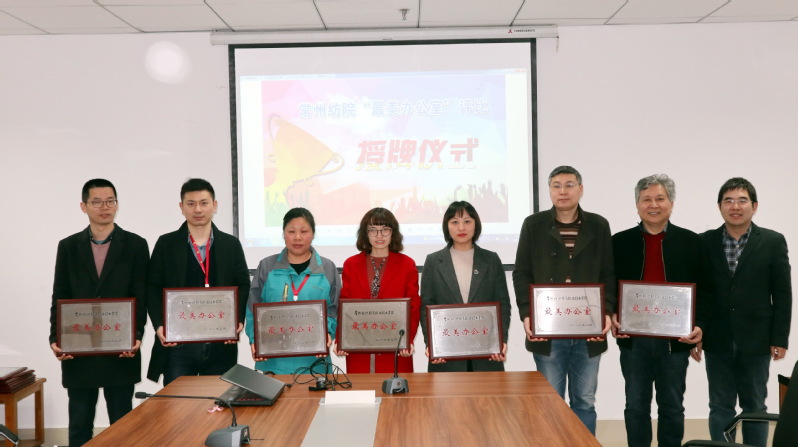 接着张震宇副院长宣读了《关于常州纺织服装职业技术学院“最美办公室”评选结果的通报》,同时,还为15个获奖部门颁授奖牌。