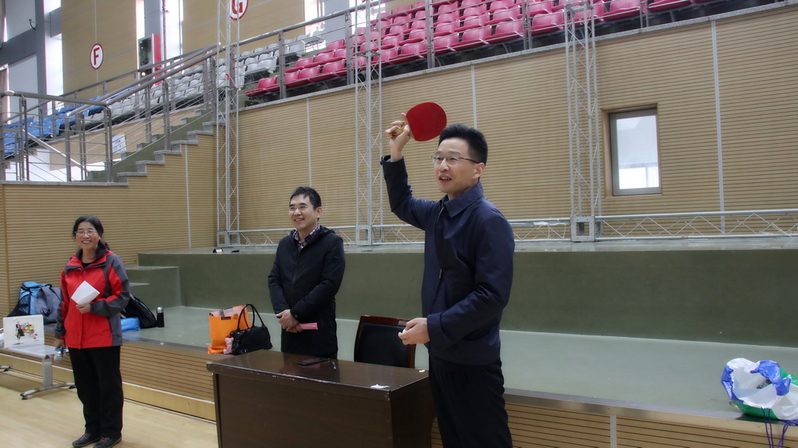 副院长张震宇出席开幕式并致辞,他说:乒乓球比赛活动不仅是学校教职工体育运动的传统项目和身体锻炼的基本方式,更是展示各部门、各二级学院团队精神风貌和集体荣誉感的重要载体。希望大家在比赛中赛出风格、赛出水平,赛后把更快、更高、更强的体育精神融入到提高工作效率中去,运用到教育教学改革中去,为学校又好又快发展注入新的生机和活力,为我校第二次党代会目标,为实现学校第二次党代会提出的目标而努力奋斗。