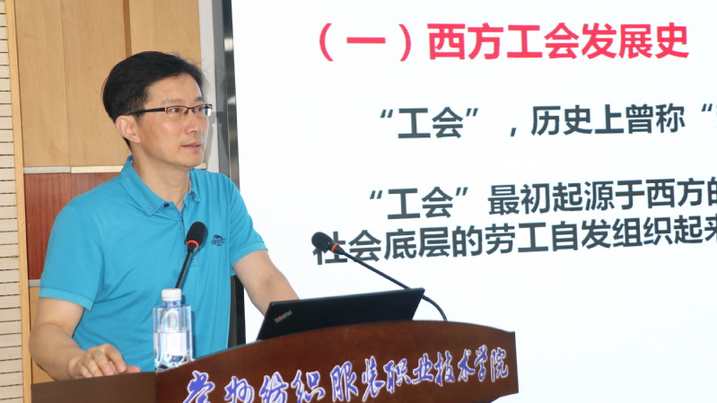 接着,校党委委员、组织部部长高江荣作了题为《从基层工会的职责和定位看如何做一名基层工会干部》的专题讲座。他从西方和中国工会发展史、习近平关于“工会”工作的论述、工会的职能定位、新形势下工会的作用、新时期我校工会工作的特点、工会干部的重要性和作用、工会干部能力素质要求等七个方面进行了阐述。高部长指出,工会干部建设是学校工会建设的重要环节, 打造一支高素质的工会干部队伍, 有助于推进工会改革, 与时俱进, 不断创新。他要求,工会在干部队伍建设中要把握政治性、坚持先进性、立足群众性, 要引导工会干部打开思路, 切实增强服务职工群众工作本领, 更好的落实工会职能, 从而助力学校建设与发展。
