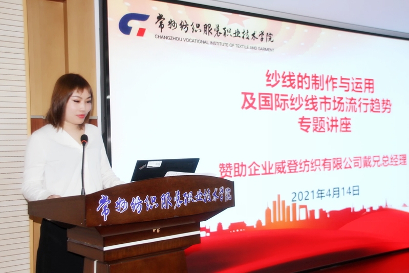 启动仪式后,校企合作单位常州威登纺织有限公司戴总经理还给大家作了专题讲座,使与会的师生了解了纱线的制作过程和运用范围及国际纱线的流行趋势。