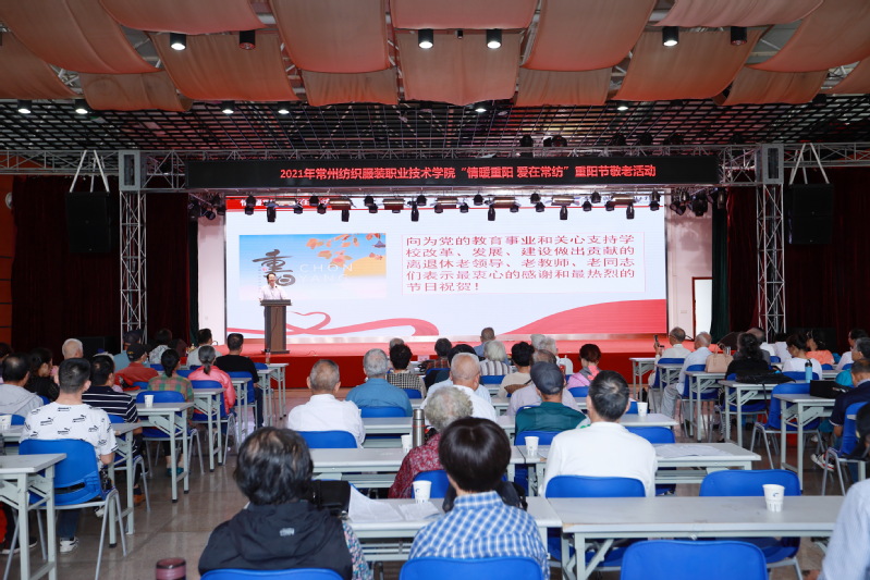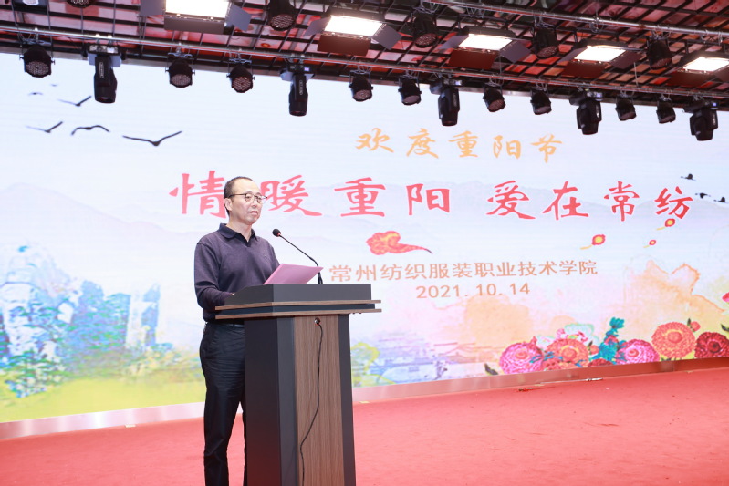 金菊吐蕊,丹桂飘香,九月初九,又到重阳。为传承和弘扬中华民族尊老敬老的传统美德,在重阳节之际,10月14日上午,学校党政办、组织部、宣传部、离退休工作处、工会、团委、退协在学生活动中心联合举办了“情暖重阳·爱在常纺”2021年重阳节庆祝活动。学校党委副书记、院长洪霄,党委委员、副院长邓凯以及相关部门负责人与90多位离退休老同志出席了活动。活动由邓凯主持。