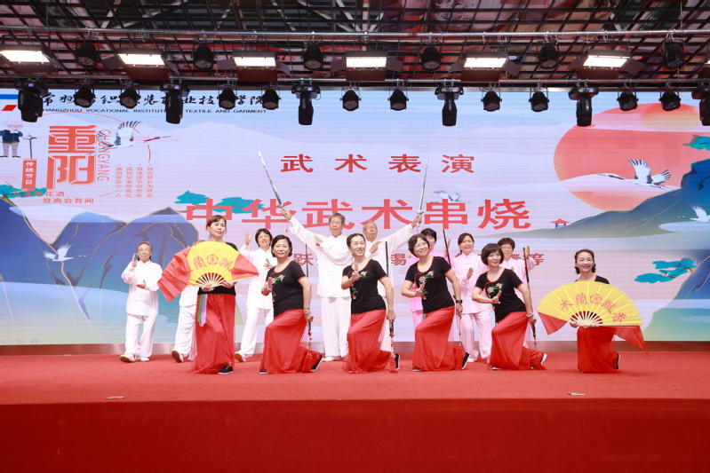 敬老活动在由离退休党总支书记、退协理事长邱铁平主持的在校师生和离退休教师同台表演的精彩节目中达到高潮。退协舞蹈俱乐部蔡苏英、陈跃安等表演了舞蹈《唱支山歌给党听》、舞韵瑜伽《灯火里的中国》;太极俱乐部赵锡龙、徐科青等表演了中华武术串烧,他们用舞蹈和武术展示对建党100周年的祝福和离退休老同志健康积极向上的生活状态;青年教师赵健和学生通过舞蹈《潇洒》和诗朗诵《重阳抒怀》向在座的老同志们送上全校师生的节日祝福。