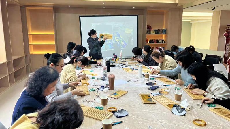 为全面履行工会职能,有效融合社会资源,创新工会工作机制,3月1日下午,在“三八”国际劳动妇女节来临之际,我校工会与常州供电公司工会在常州供电公司工会之家联合开展了“只此青绿”——掐丝珐琅茶盘美学实践活动,来自常州供电公司的二十多位女会员体验了掐丝珐琅技艺,近距离感受传统文化的魅力。