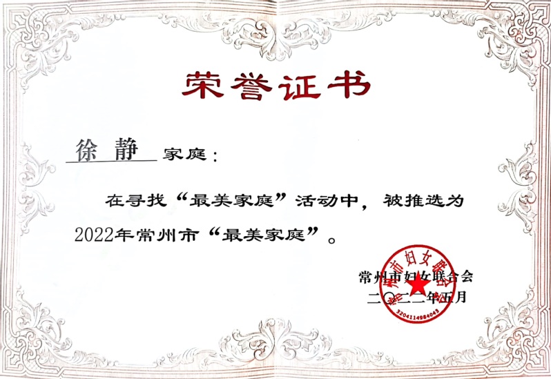 为深入贯彻习近平总书记关于注重家庭家教家风建设的重要论述精神,大力培树践行新时代家庭观和弘扬社会主义家庭文明新风尚的家庭典型,以实际行动迎接党的二十大胜利召开,2022年市妇联在全市范围内开展常州市五好家庭及最美家庭推选活动。我校推荐的李凯家庭、徐静家庭被评为常州市最美家庭。