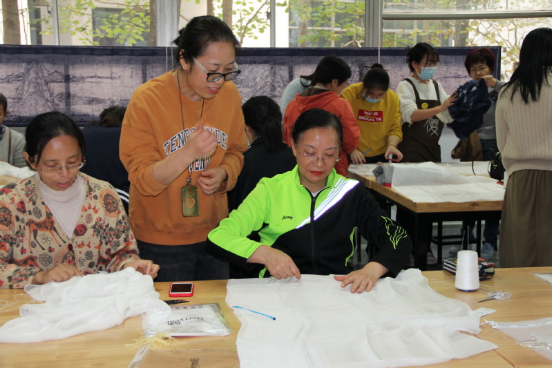 活动中,女知联会员们一针一线、一扎一染、一洗一熨、独具匠心,惊喜于自己的“妙手”制作出的扎染作品。女知联会长赵玲珍表示,常纺院女教师结合专业特色,沉浸式体验非遗,提升专业技能,女同胞们心灵手巧,创造美的能力强!通过本次活动,大家摆脱内心的浮躁,汲取、感受中国传统文化的奥秘和魅力。