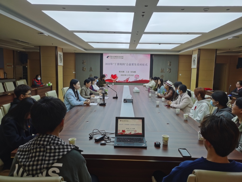 为认真学习贯彻党的二十大精神,切实帮助解决贫困学生在思想、学习、生活等方面的困难,促进学生全面健康成长,校妇联、工会、女知联继续坚持“办好一关爱实事”,持续开展“丁香妈妈”公益爱生活动, 11月23日下午3:30 ,2022年“丁香妈妈”公益爱生行动结对仪式在1646会议室举行。校党委委员、副院长赵玲珍,妇联主席、工会主席胡艳妹以及17对“丁香妈妈”和受助学生参加结对仪式。结对仪式由妇联副主席顾剑柳主持。
