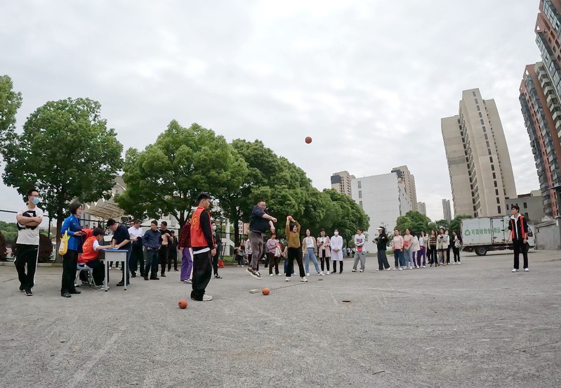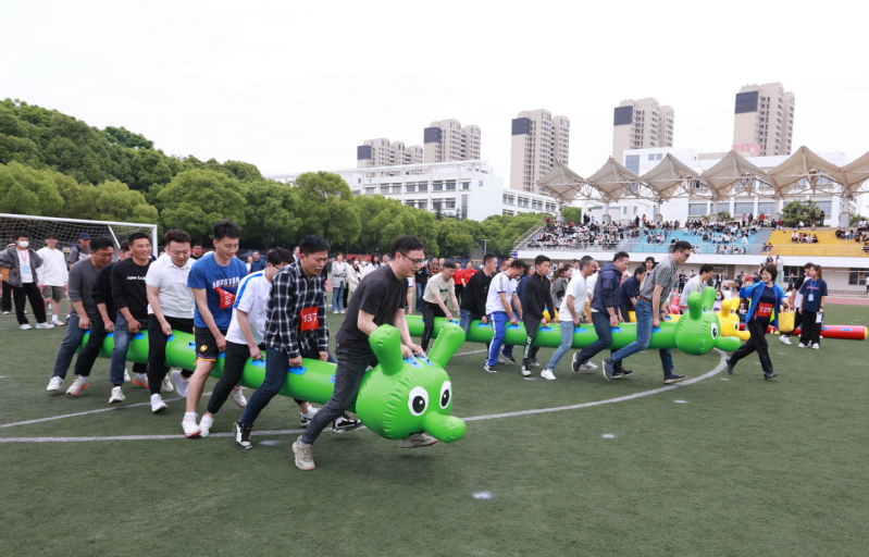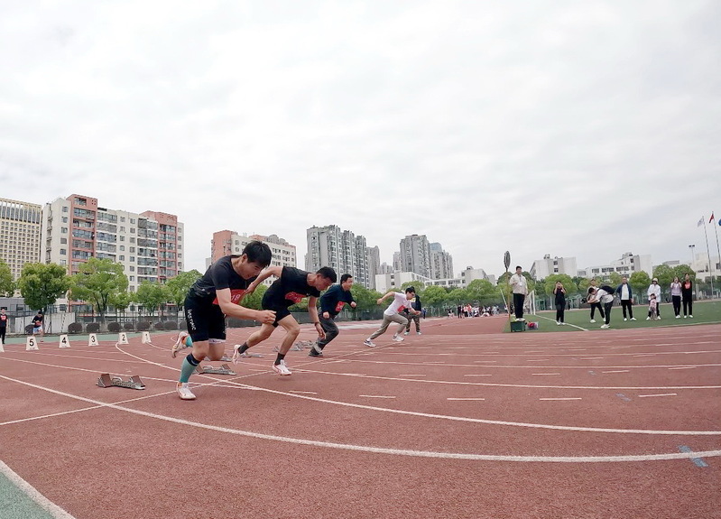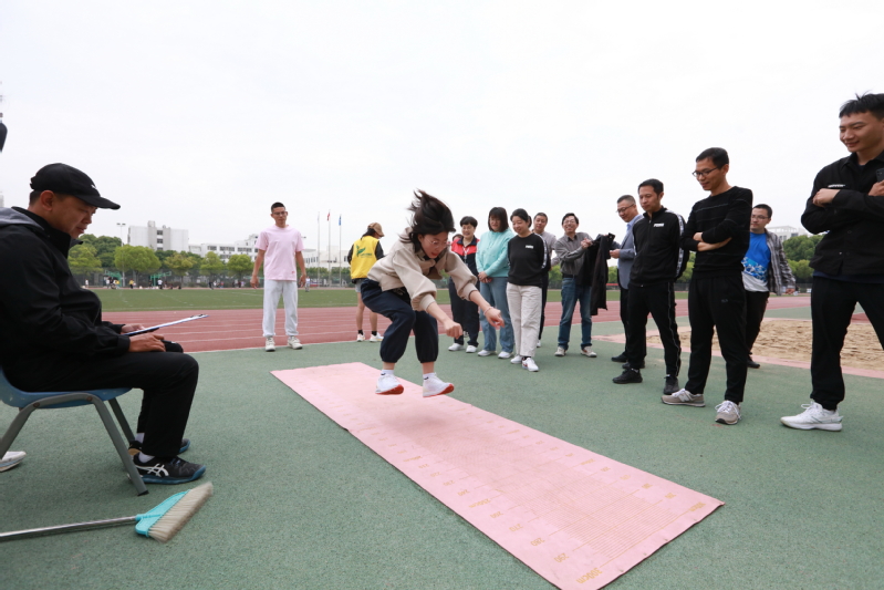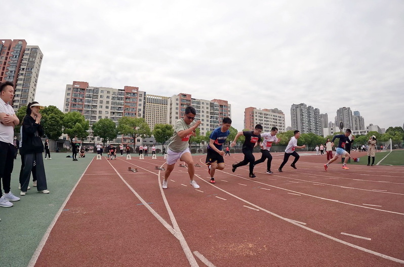 校工会为推进学校全民健身活动的深入开展,展现教职工积极向上的精神面貌,积极组织各分工会教职工参赛。在充分考虑教职工年龄、性别特点的基础上,以“锻炼身体健康身心 快乐工作 幸福生活”为主题,体现竞技体育与趣味体育相结合的原则,设计了男女甲组乙组100米、男女实心球掷远、男女立定跳远、实心球滚中目标和“毛毛虫”竞速比赛等5个项目。