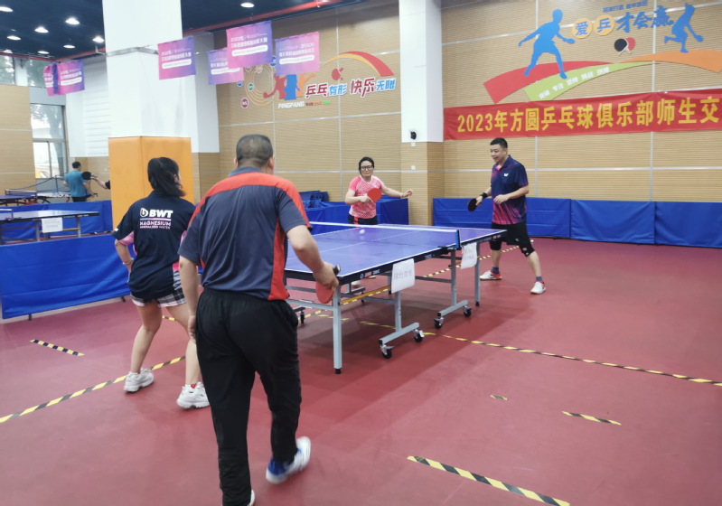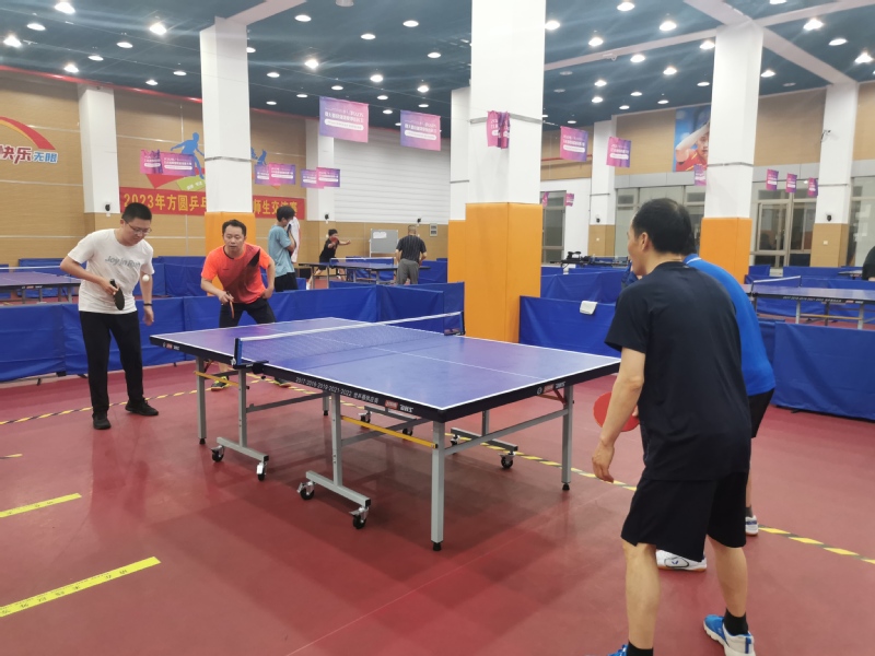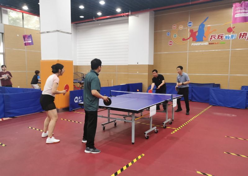 俱乐部成员19人参与报名单打和双打比赛,其中8位老师与7位学生单打比赛,师生对抗赛采用5局3胜制;俱乐部会员间双打(男双、女双、混双),比赛采用3局2胜制。比赛现场精彩纷呈,气氛热烈,选手们以饱满的热情积极投入到比赛中,他们神采奕奕,汗如雨下,充分诠释了“拼搏奋进”的体育精神,展示了俱乐部乒乓球爱好者们的高超球技和良好团队协作意识。
