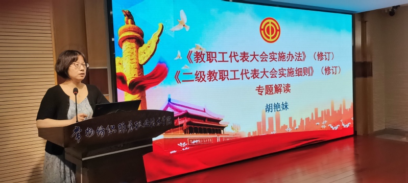 校工会主席胡艳妹主持会议并解读工会两件修订文件