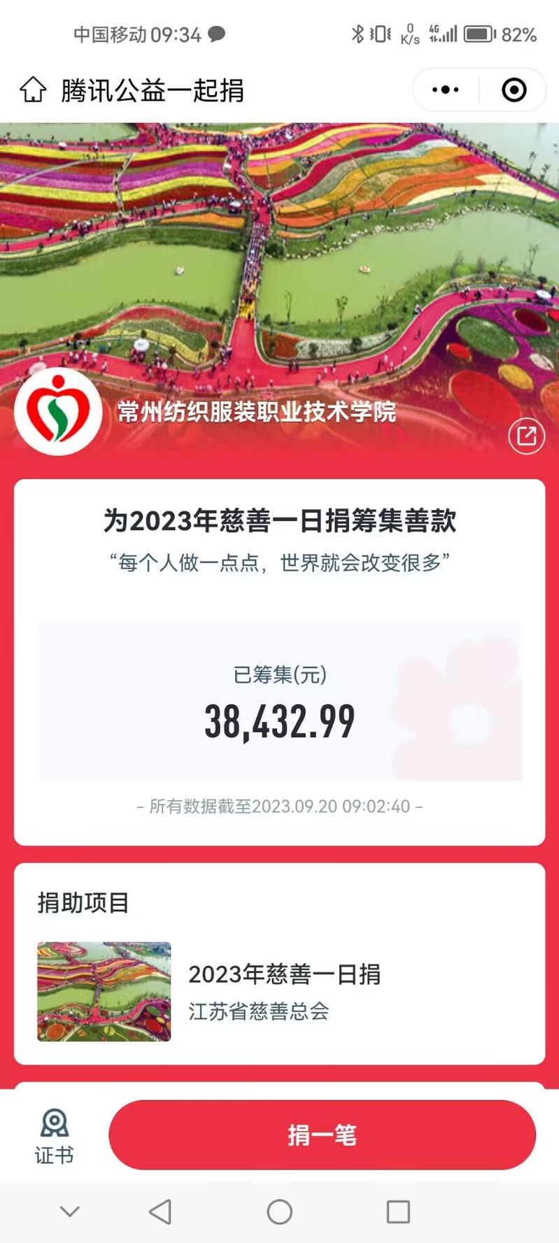 全校教职工积极响应、踊跃捐款、奉献爱心。此次“慈善一日捐”采取线上捐赠的方式,到9月20日9:02,共累计捐款38432.99元。充分展示我校教职工积极参加社会公益活动,关爱社会慈善事业发展的精神风貌。