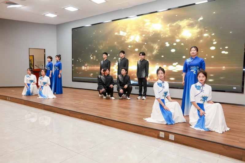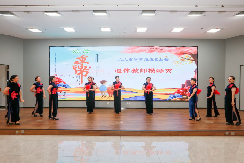 活动中,退休教职工和学生同台表演了精彩节目。退休教职工表演的《旗袍秀》,展示了退休教职工们优雅的风姿、健康向上的精神风貌和生活态度;大学生艺术团通过优美动听的小合唱《蝴蝶泉边》向在座的老同志们送上全校师生的节日祝福。