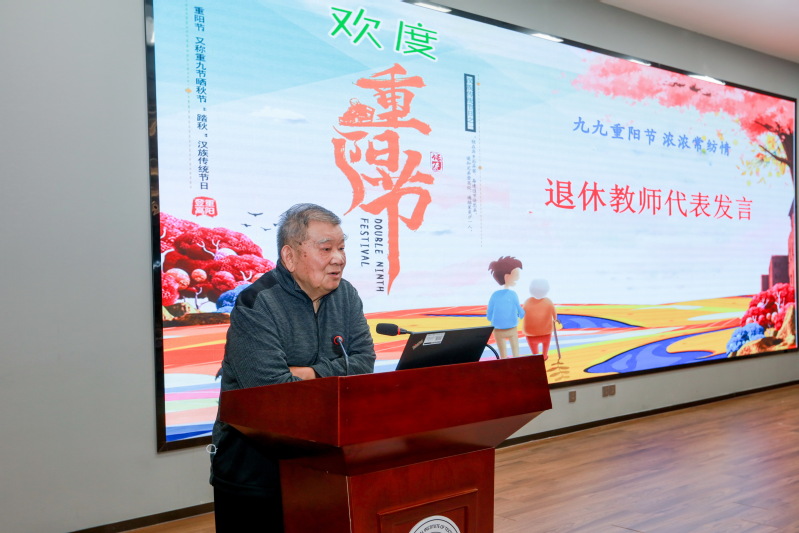 接着,退休教职工代表、老校长金小坡发言。他代表退休教职工感谢学校党政对老同志的关心与厚爱,号召退休教职工积极参与学校的各项活动,关注学校的建设与发展,发挥好余热为学校的教育教学出谋划策,贡献出自己的力量。