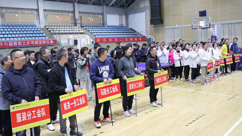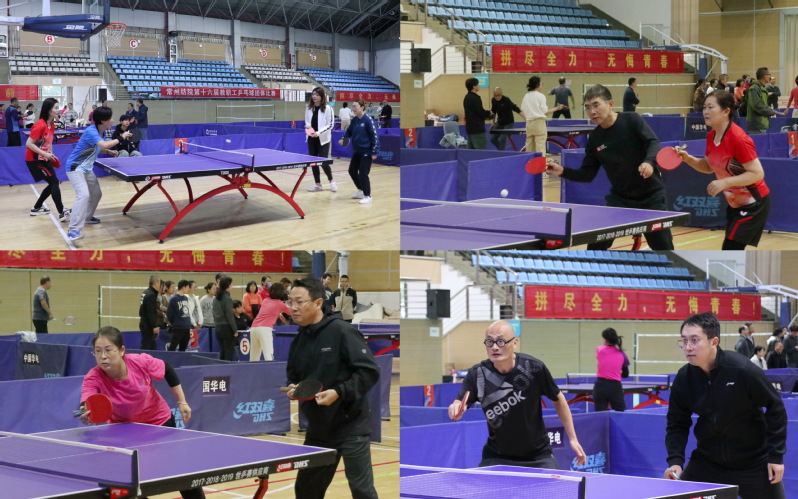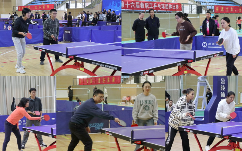 11月11日,我校第十六届教职工乒乓球团体比赛在校体育馆举行。来自各分工会的11支代表队共计150余名教职工参加了比赛。本届比赛为团体赛,分为A、B两组,以男双、女双、男女混双形式进行比赛,比赛采用五场三胜制,每场比赛为三局两胜,每局11分。