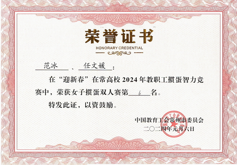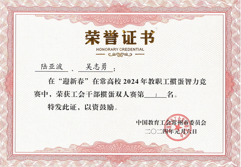 比赛中我校选手精诚团结,协同作战,或一路高歌猛进,或半路绝地反击,经过一天4轮激烈角逐,我校选手赛出了风格,取得了优异成绩。陆亚波、吴志勇获得工会干部掼蛋双人赛组第一名,范冰、任文媛获得女子掼蛋双人赛组第六名,学校获得了团体三等奖。