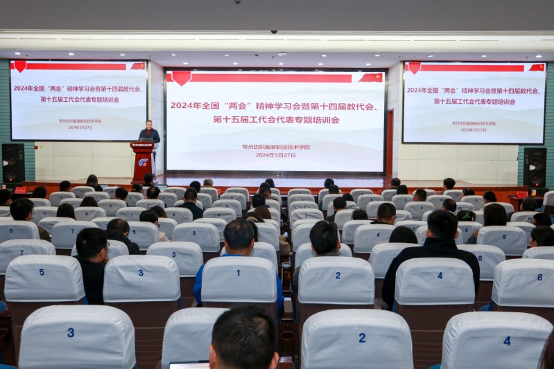 3月27日下午,我校组织2024年全国两会精神学习会暨第十四届教代会、第十五届工代会代表专题培训会,邀请十三届、十四届全国人大代表、全国劳模、全国三八红旗手、常州老三集团工会主席、我校客座教授李承霞,就全国两会精神进行宣讲。学校党委理论学习中心组成员、中层干部、学校“两代会”代表、“青马班”学员参加学习。会议由党委委员、党委宣传部部长夏斌主持。