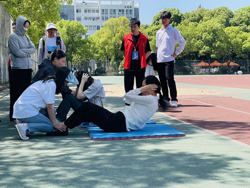 我院386名教职工参加了本次校运会教工组比赛,参加竞技的运动项目包括:100M、3000M、立足跳远、实心球掷远4个田径项目和篮球投篮、足球踢准、排球90 秒自垫球、引体向上、1 分钟仰卧起坐5个技能项目。