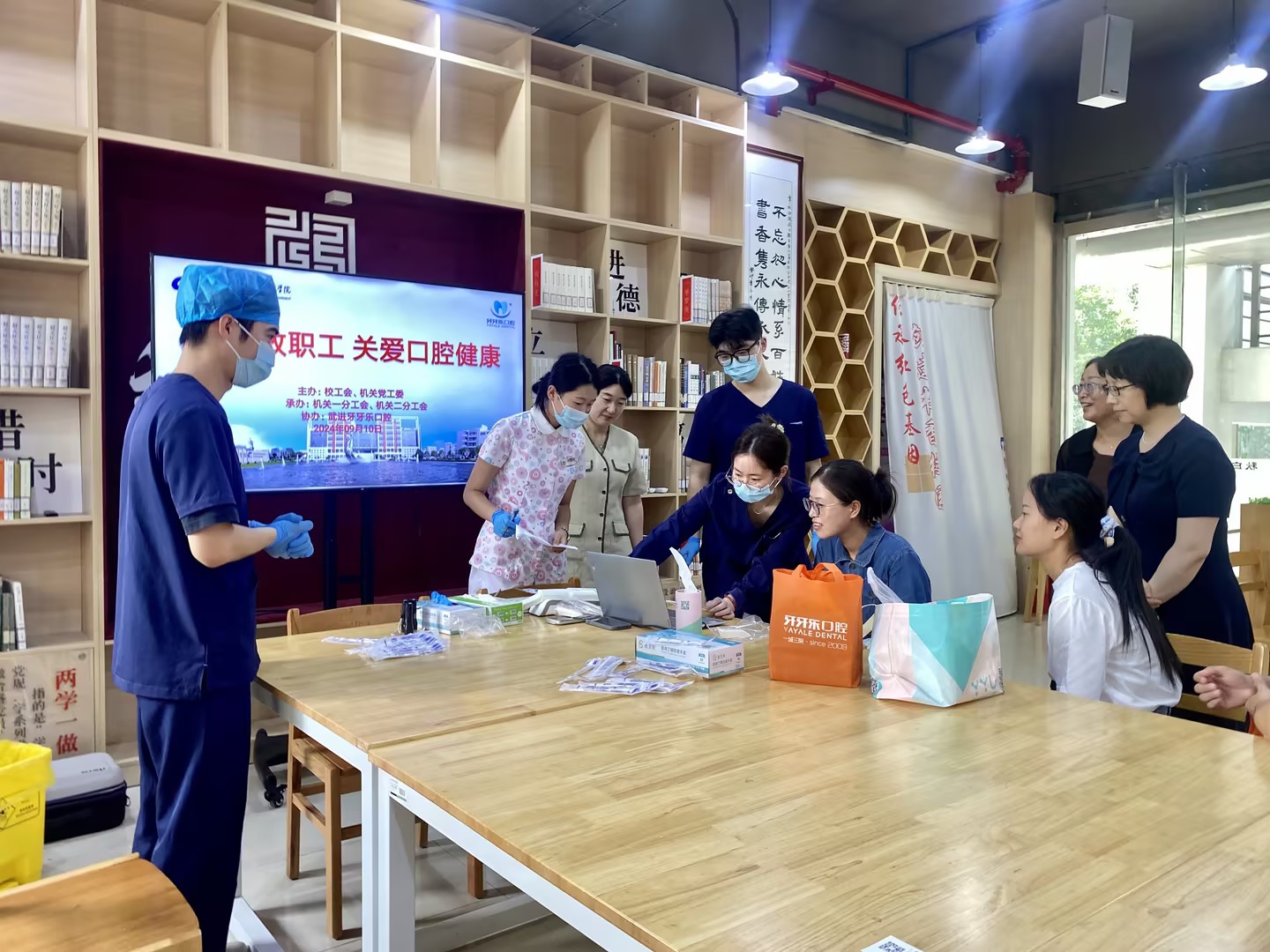 为庆祝第40个教师节,迎接第36个“9·20全国爱牙日”,9月10日,校工会、机关党工委举办“情系教职工 关爱口腔健康”校园口腔健康义诊活动,本次活动由机关一分工会、机关二分工会承办,武进牙牙乐口腔协办,为我校师生提供了口腔健康检查和咨询服务。