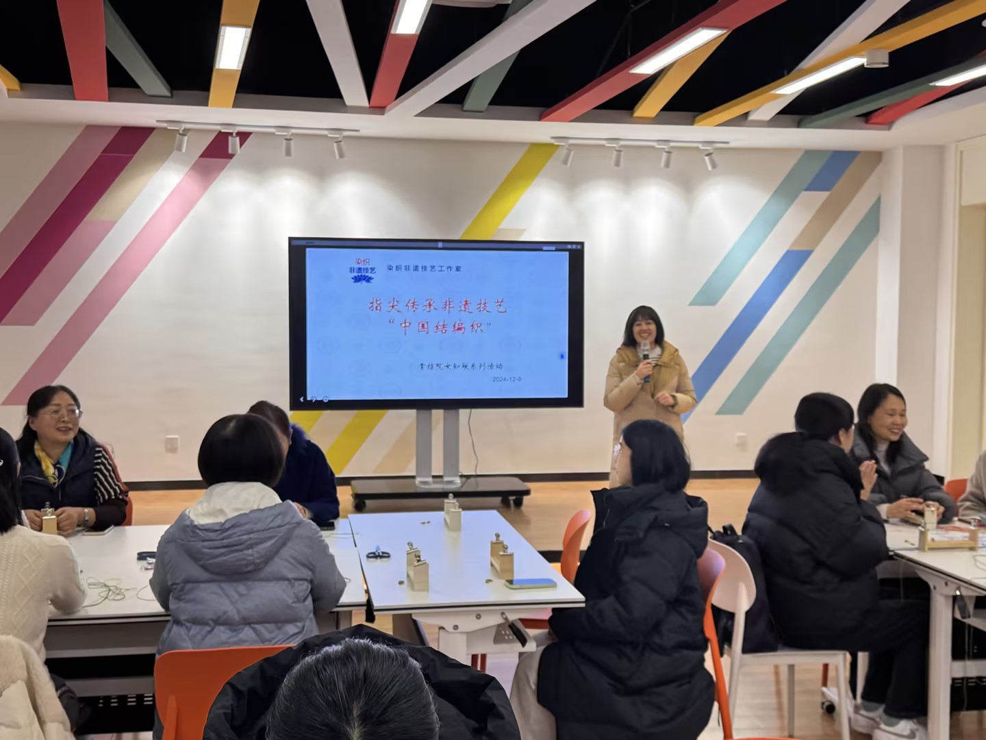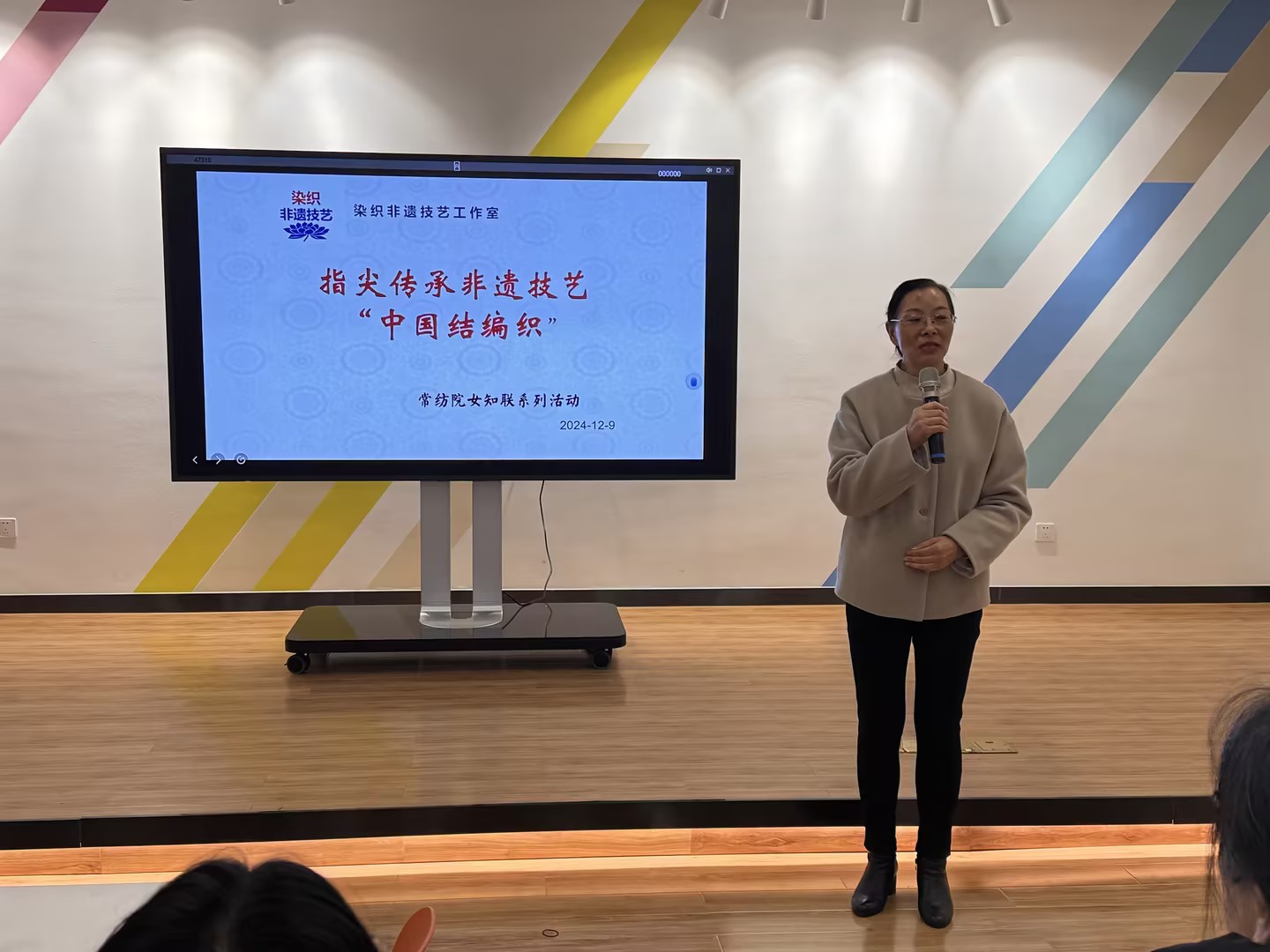 12月9日下午,学校女知联在纺织科技文化馆开展了“指尖传承非遗技艺,巧手编织中国结”活动,活动由智能纺织与材料学院女知联分会承办。杨静芳老师带领经纬编织社学员与30余名女知联教师一起感受了中国传统绳结技艺的魅力。